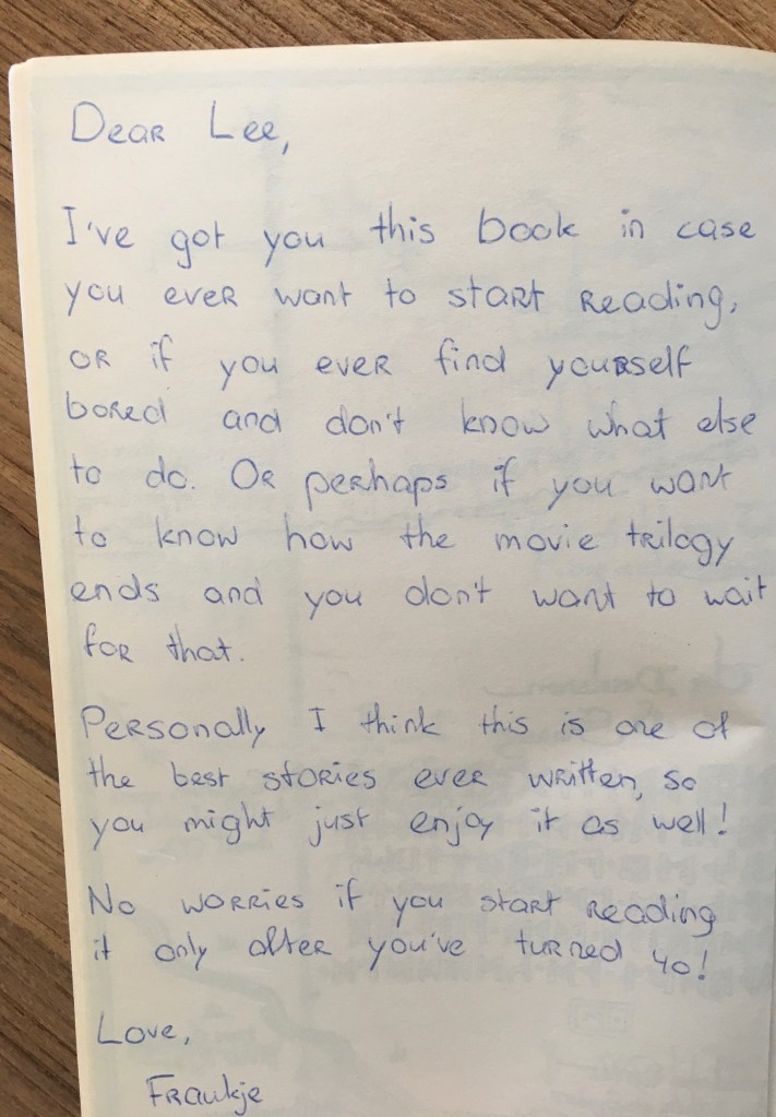 I soon accepted the weirdness of that last fact, and turned to more important things: should I read it or should I wait another six months to watch it? Honestly…December 2012 quickly approached and I hadn’t read it. Then, ironically I was given it as a gift, and it was actually the note inside that made me read the book…