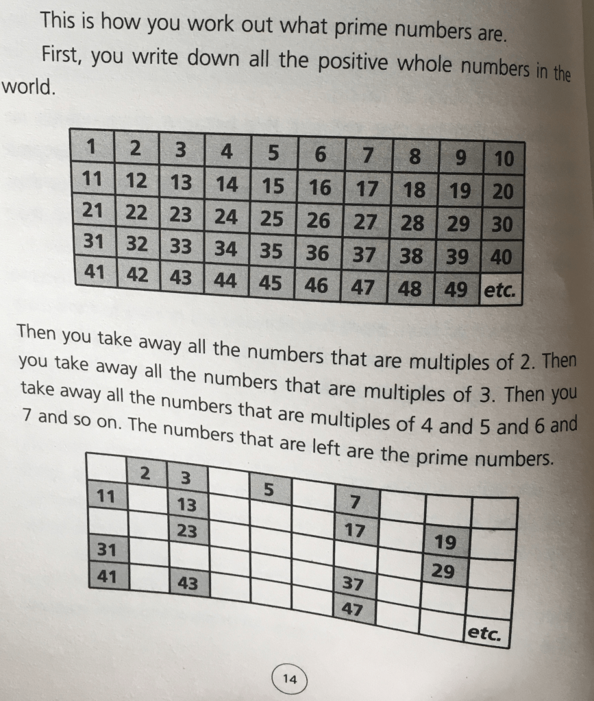 At this point in my blog, it’s probably best to mention what type of character Christopher is, as the book is written from his perspective. You see he’s not really the 15-year old boy most people would expect. He is an extremely intelligent young boy who knows “all the countries of the world and their capital cities and every prime numbers up to 7,507” (Haddon, 2004, p2). Christopher loves math because it’s logical, straightforward and has a definite answer, unlike life. Each chapter is illustrated with prime numbers, simply because Christopher likes prime numbers. He even dedicates chapter 19 to explaining how to work out what prime numbers are. But I’m not going to get into that because unlike Christopher, I hate math.